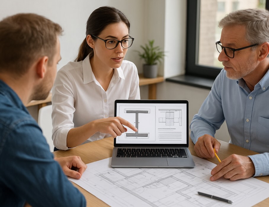 Réalisation de l’étude structurelle incluant une visite d’un ingénieur sur site, le calcul de descente de charges, le dimensionnement des renforcements, ainsi qu’une note de calcul et des plans techniques conformes aux normes DTU et Eurocodes.