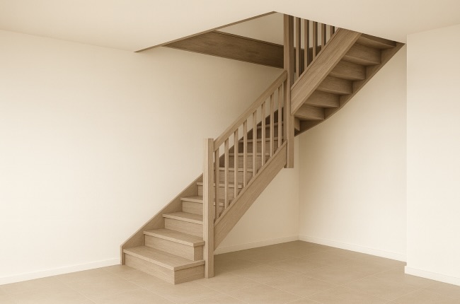 Découpe dans un plancher pour ajouter un escalier entre deux niveaux. L’ouverture est solidifiée pour supporter les charges.